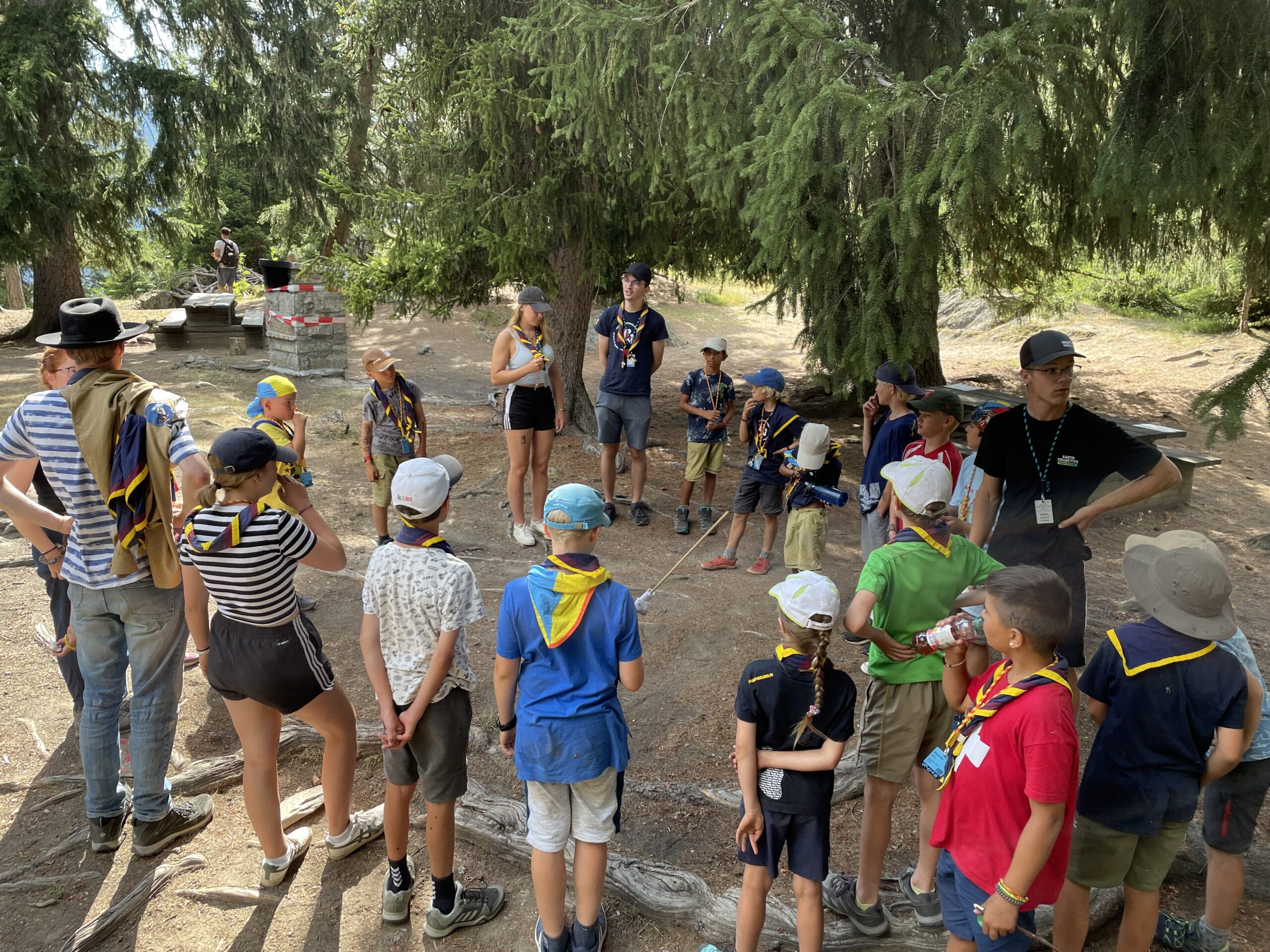 Heute morgen ging es früh los mit Morgensport. Nach einer kurzen Jogging-Runde und einer kleinen Tanzeinlage war jener jedoch ziemlich schnell vorüber. Die Küche verwöhnte uns zum Morgenessen mit Rührei und Speck. Nach der vorköstlichen Verpflegung vermisste das Küchenteam ihre Lieblingskelle – Die Unordung der Wölfli sei schuld und deshalb wurde in den Zelten aufgeräumt.