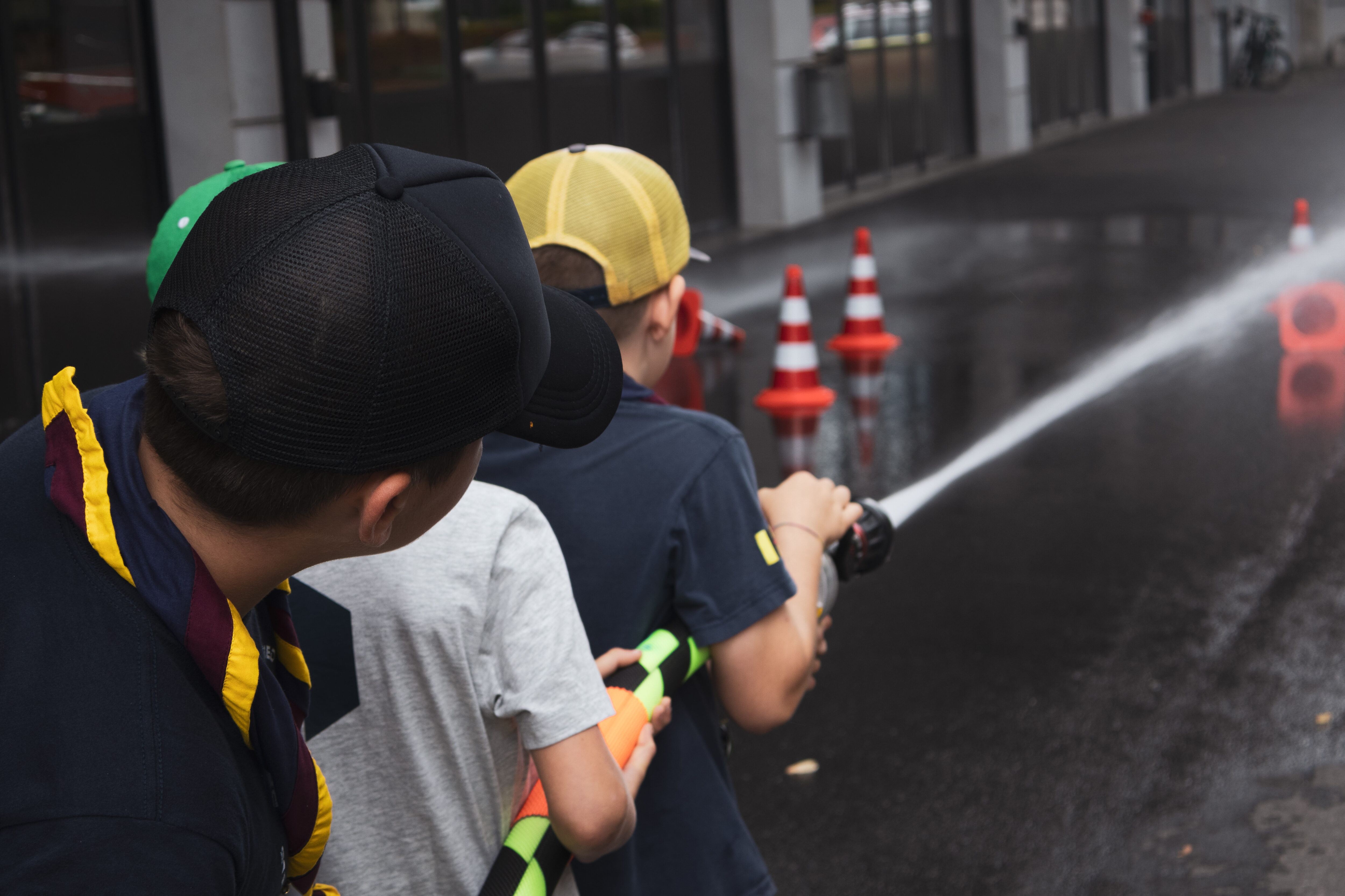 Wir durften mit den Strahlrohren Pylonen abschiessen.
