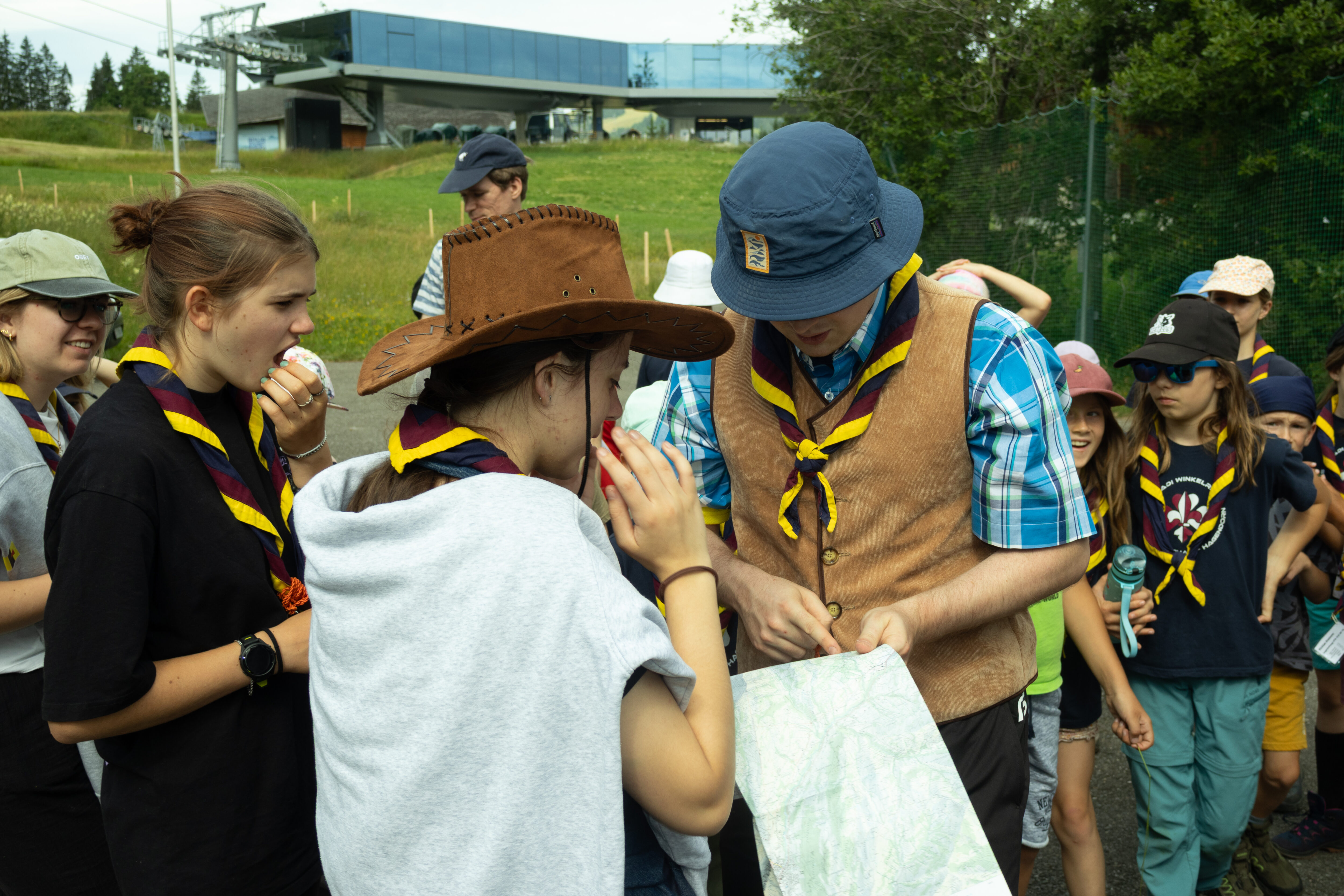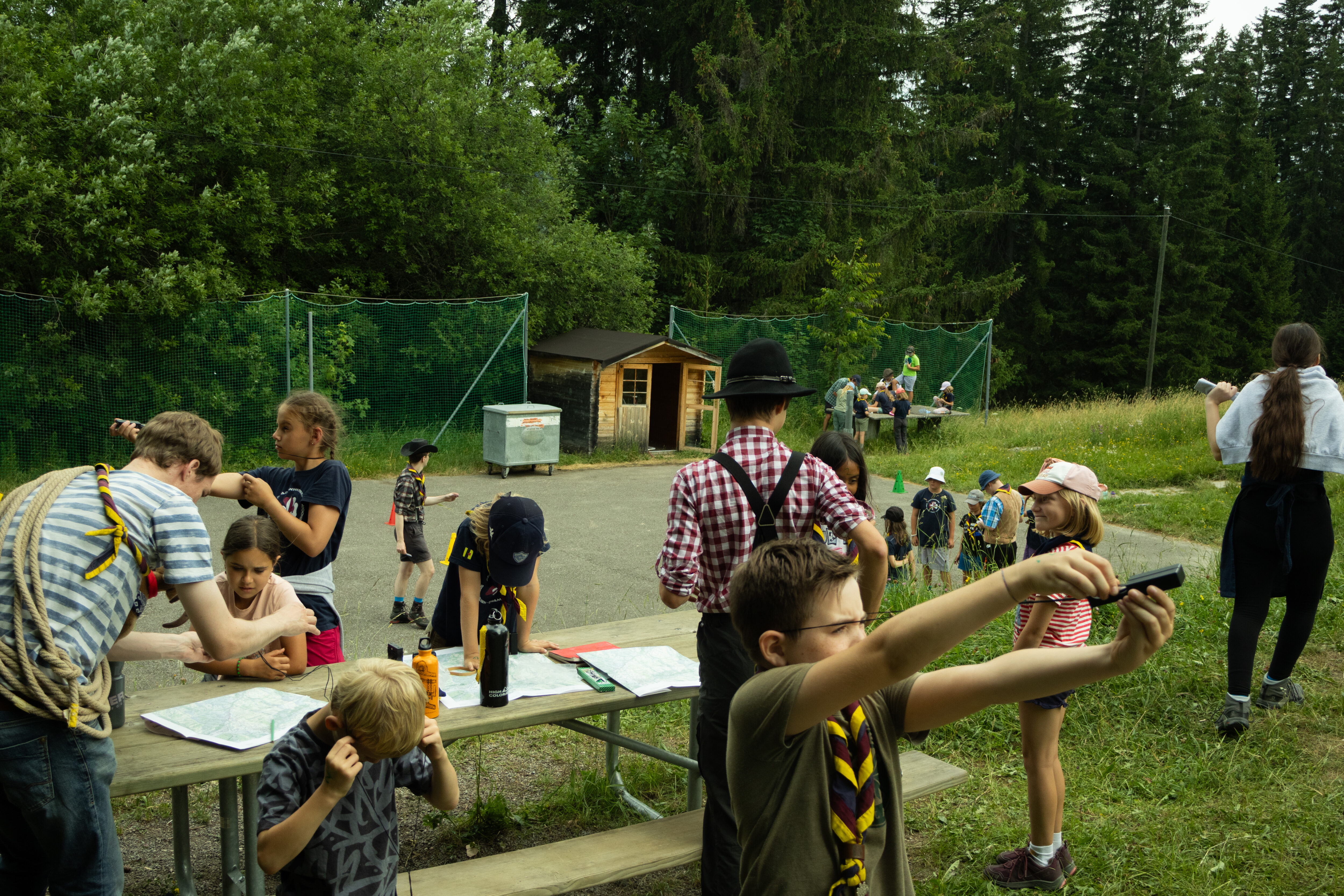 Die Pfadfinder können uns leider nicht helfen, weil sie es noch nicht geschafft haben ein Firstzelt aufzustellen (steht am Abend immer noch nicht).