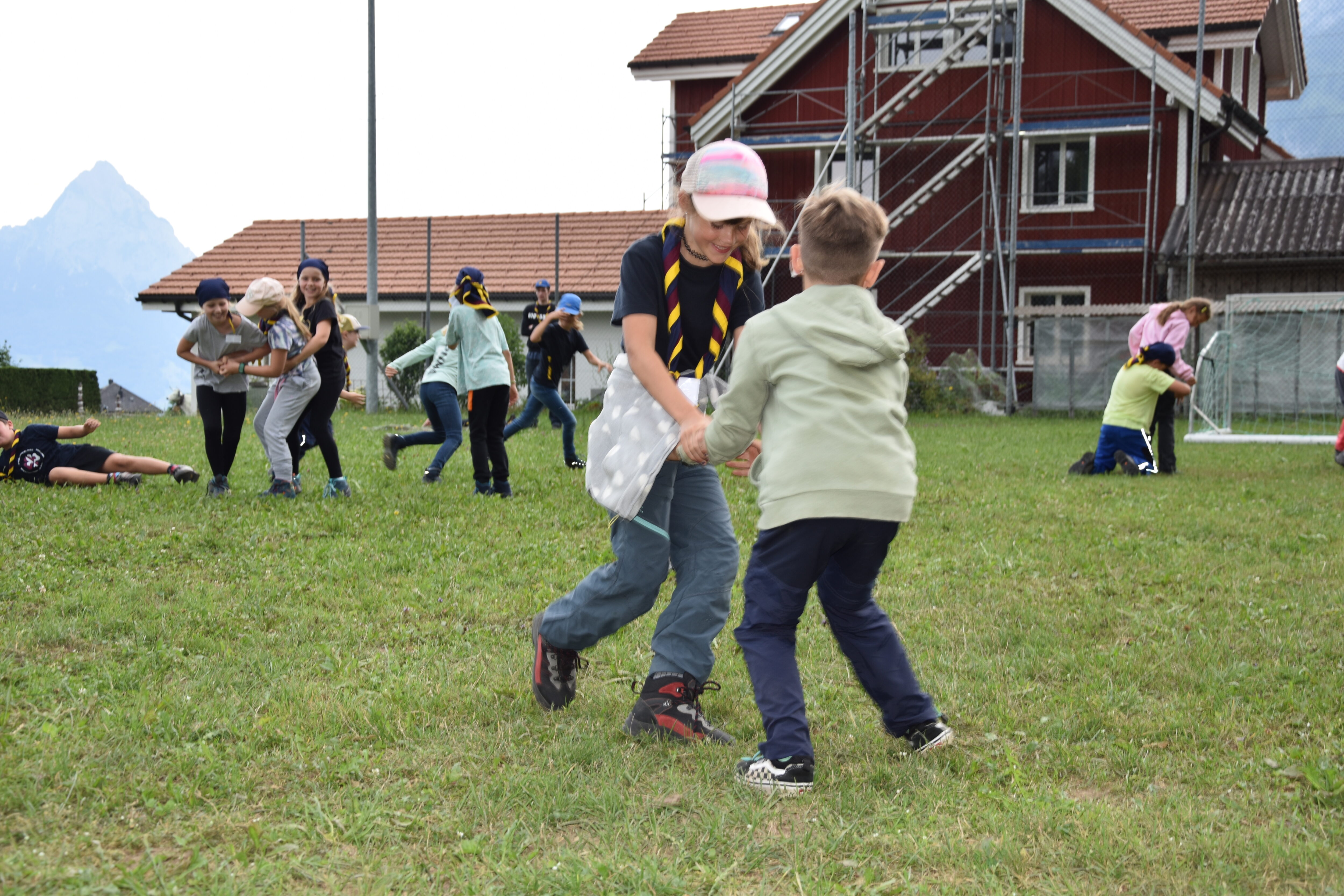 Nach dem Z’Morge bemerkten wir grossen Schreck, dass unser Security-Mann nur noch Rückwärts sprechen kann. Wir vermuten stark, dass er von einem Geist besessen ist. Schnell fesseln wir ihn und machen uns auf die Suche, um ein Gegenmittel zu finden. Jedoch zerstritten sich die Hotel-Angestellten, wo denn nun dieses Gegenmittel zu finden sei. Die einzige Lösung schien uns ein Geländespiel, um den Konflikt zu beseitigen. Kurz danach fanden wir das nötige Gegenmittel für den Security-Mann. Dieser wurde von uns auf der Stelle behandelt.